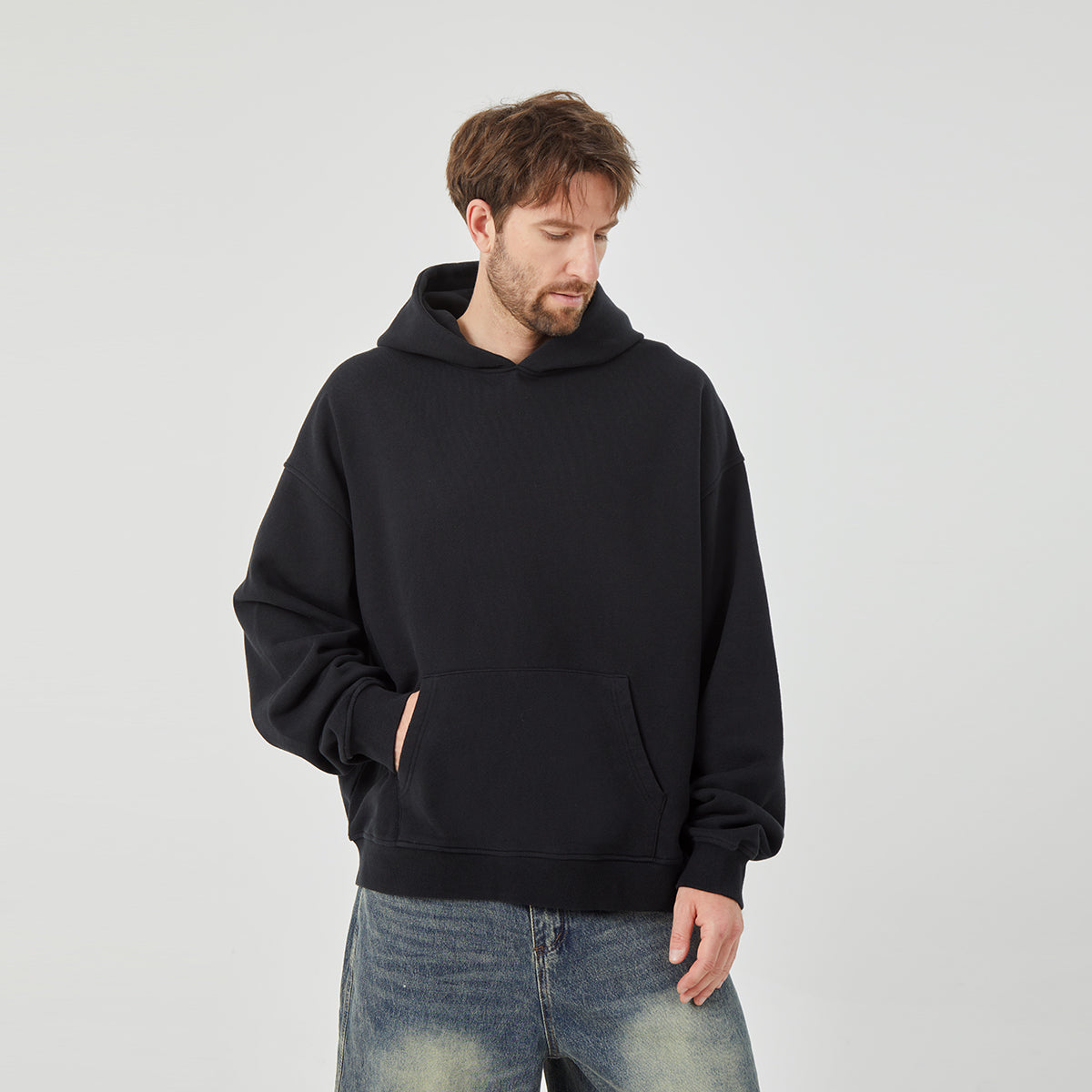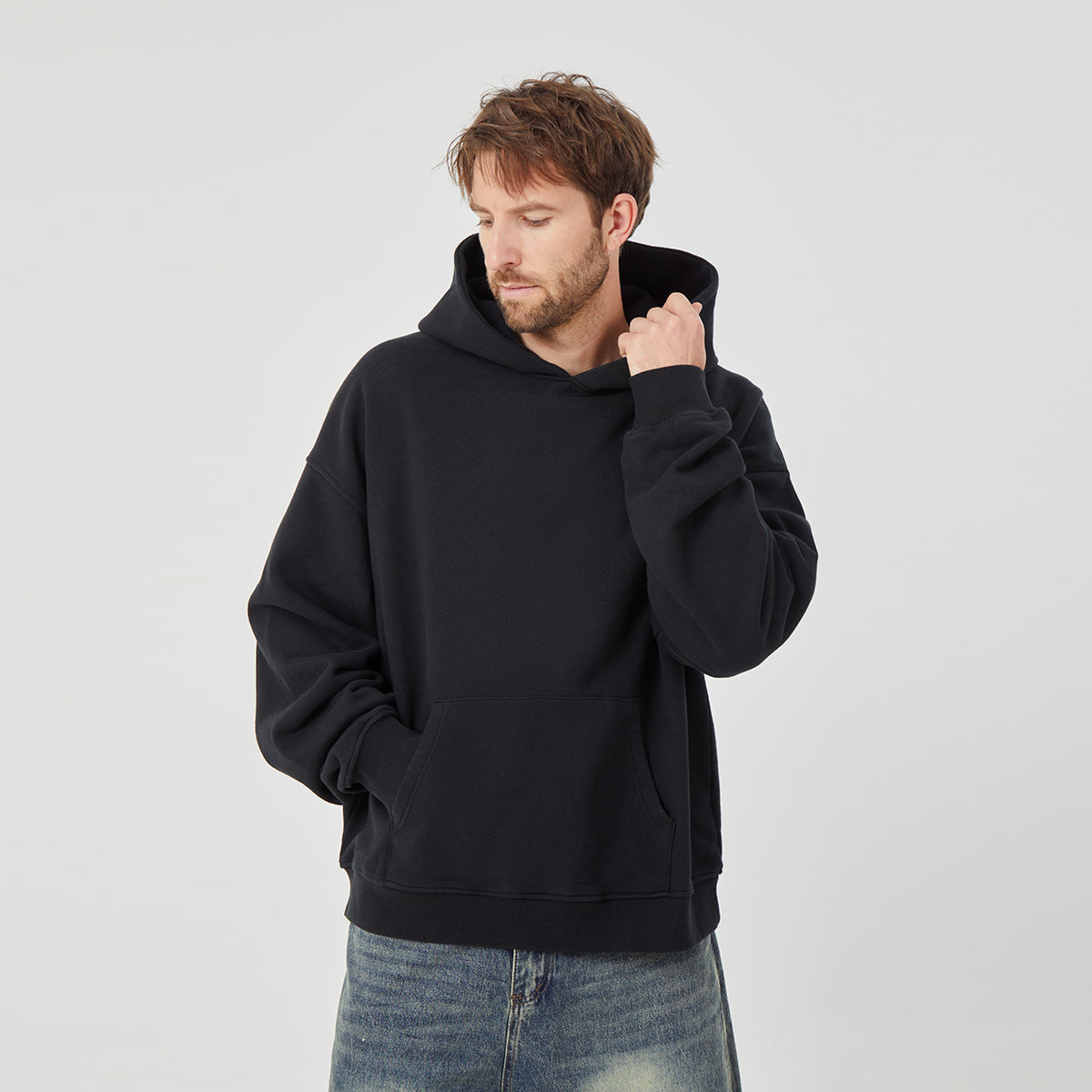 Step into the world of urban exploration with this ROCK&CALEB ensemble.The outfit features a sleek back hoodies that provides both warmth and style.The matching light-blue jeans offer a classic and comfortaleb fit.Topping it off is a deep-grey hat adorned with a white pattern,adding a touch of uniqueness.Our brand's mark on this outfits gives it an exclisive and sophisticated feel.Wheather you're navigating the city streets or embarking on a casual adventure,this look is perfect for making a statement.