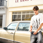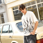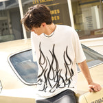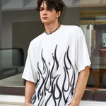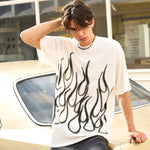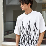Elevate your street style with our Men's Urban Flame Graphic T-Shirt. Crafted from soft and breathable cotton, this tee offers both comfort and modern flair. Featuring a bold flame print in monochrome design, it's perfect for making a statement. The relaxed fit ensures a casual look, while the high-quality material guarantees durability. Ideal for everyday wear or paired with your favorite jeans for a night out.
