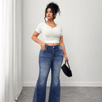 Women's Plus High Waisted Flare Jeans with Lace Side Detailing